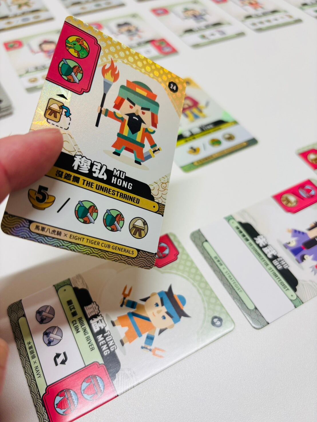 水滸伝に登場する英雄たちで自分だけの部隊を組んで得点を稼ぐゲームです。英雄カードを出すと能力が使え、効果によって連鎖してコンボを作っていくことが可能です。プレイ時間も短く、カード効果を組み合わせを考えるのが好きな方にはおすすめのゲームです。